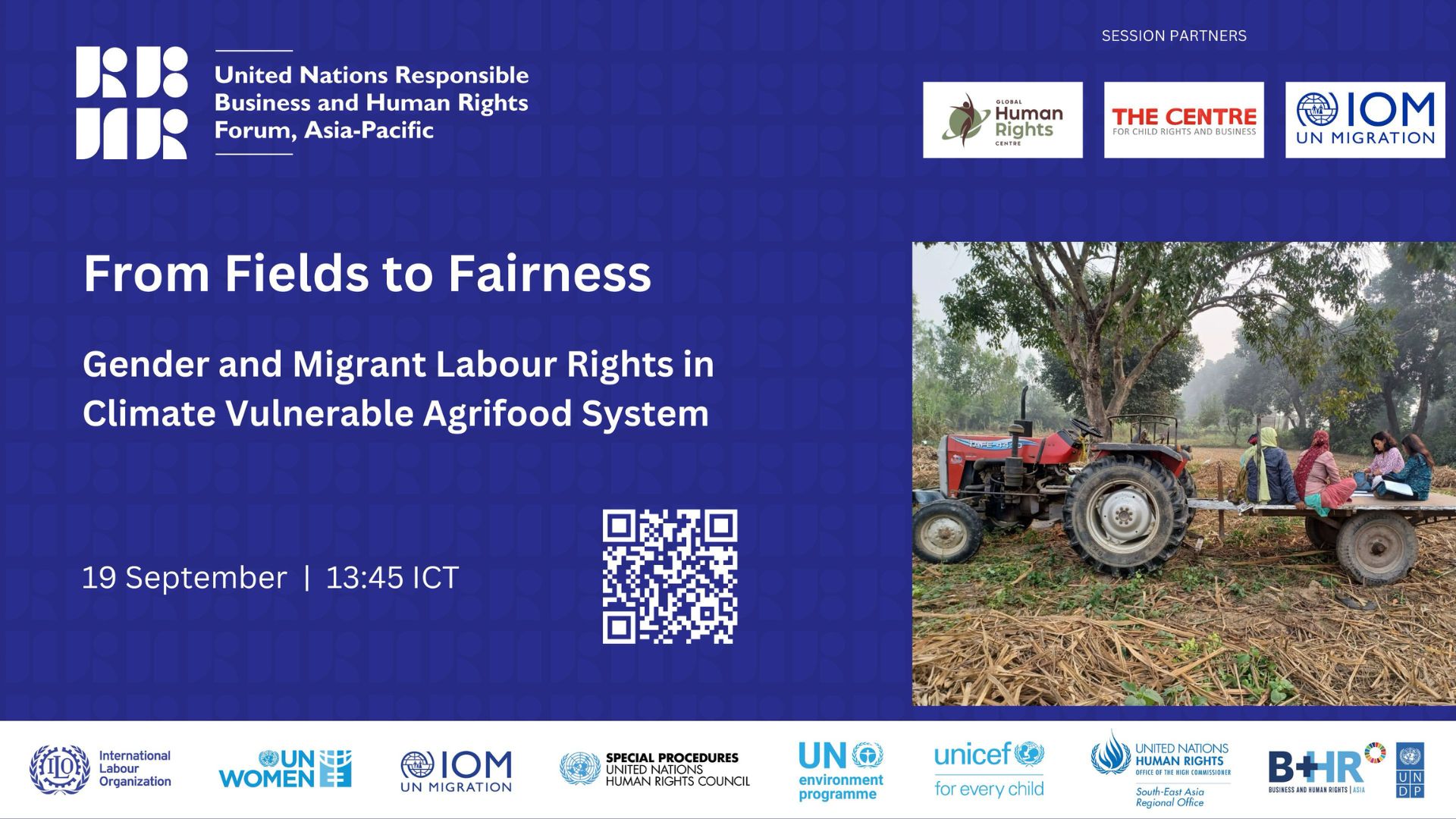 Global Human Rights is serving as a collaborating partner and co-organiser of a session at the 2025 UN Responsible Business and Human Rights Forum, Asia-Pacific together with the United Nations International Organization for Migration (IOM) and The Centre for Child’s Rights and Business. Date & Time: 19 September 2025, 13:45–14:45 ICT; Room CR4 Session Title: Fields to Fairness:
