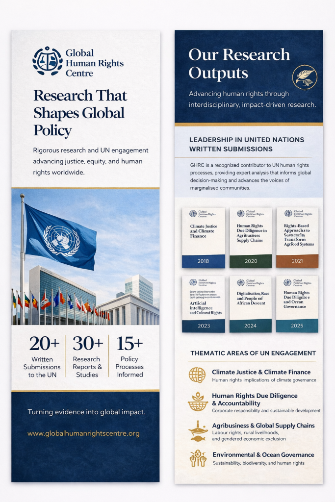 Beyond UN submissions, GHRC produces a diverse portfolio of research outputs that reflect the Centre’s interdisciplinary scope and global engagement. These include: